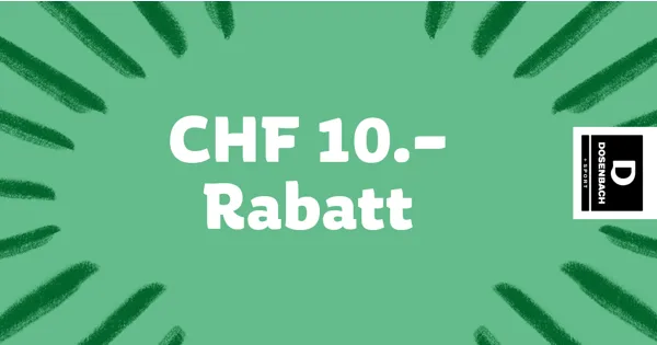 Ab einem Einkauf von CHF 49.95.Nicht kumulierbar mit anderen Aktionen. Nicht gültig für den Kauf von Geschenkkarten.Gültig bei Abgabe dieses Coupons in Ihrem DOSENBACH im Einkaufscenter Rosenberg.