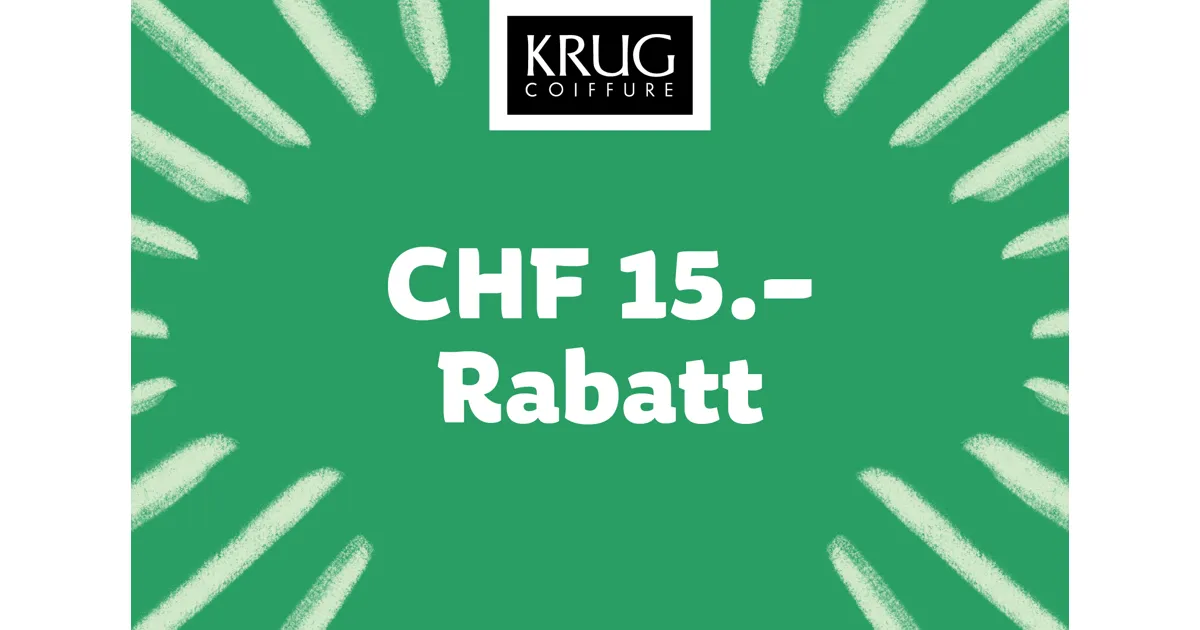 Auf alle Serviceleistungen.Exkl. Verkaufsprodukte. Nicht kumulierbar mit anderen Bons oder Aktionen.Gültig bei Abgabe dieses Coupons in Ihrem KRUG COIFFURE im Einkaufscenter Rosenberg.