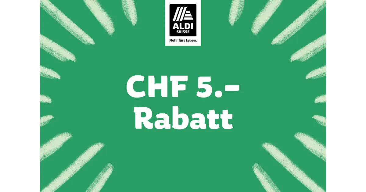 Ab einem Einkauf von CHF 40.-Nicht kumulierbar. Weitere Einlösebedingungen und Ausschlüsse unter: aldi-suisse.ch/ausschlussGültig bei Abgabe dieses Coupons in Ihrem ALDI SUISSE im Einkaufscenter Rosenberg.